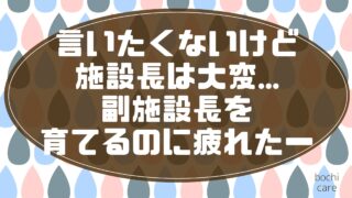 言いたくないけど、施設長は大変。副施設長を育てるのに疲れたー