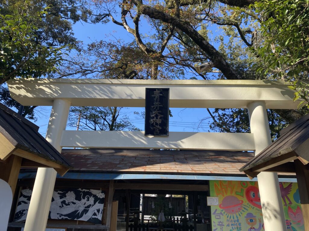 奥の方にまた鳥居があって、青井大神宮と書いてあります👇
