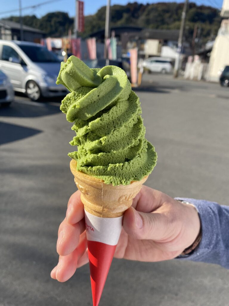 👇これは、人吉温泉物産館の外にあるお店のソフトクリームです。抹茶味。