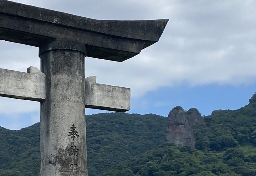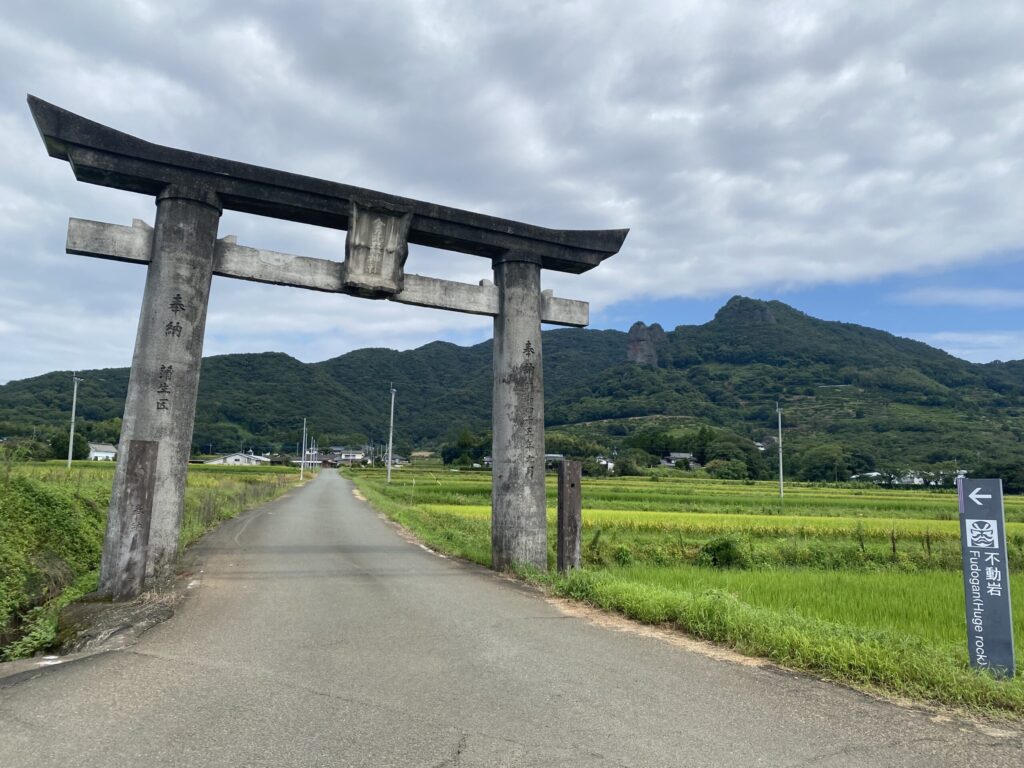 不動岩に行く前に、鳥居があるのでそこをわざわざ通って山の方に向かいます。