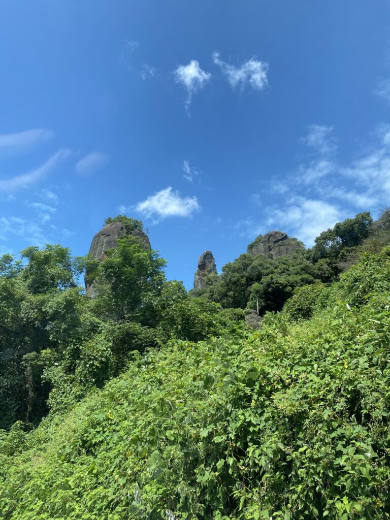 山の中に、ひときわ大きなそびえたつ岩があるんです。